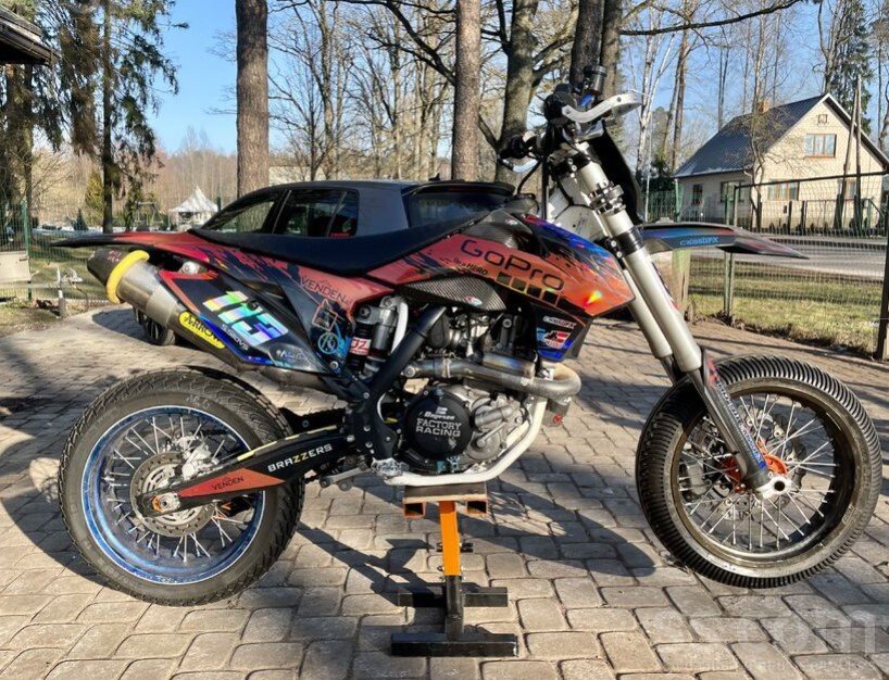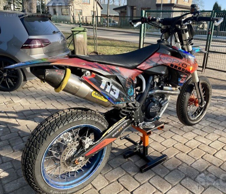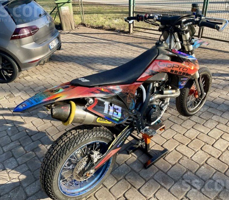 Ktm Smr450, 2016, Athena regulējams ecu ar wificom un aplikāciju, Arrow thunder dubultā titāna izplūde, brembo rcs15 bremzes, bigbore kit 510cc, titāna vārsti, K&N gaisa filtrs, Addler slipper clutch, vieglais akb.